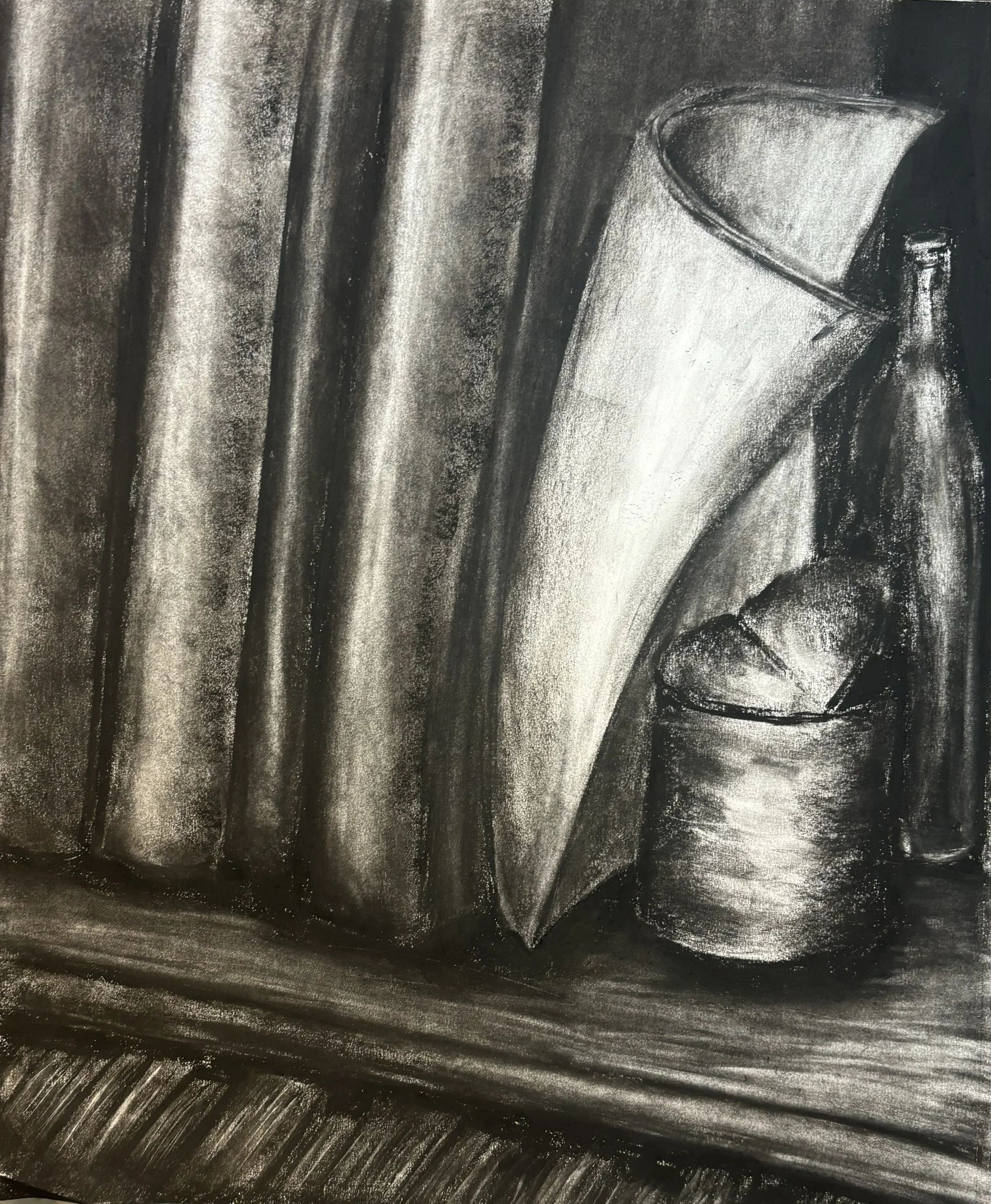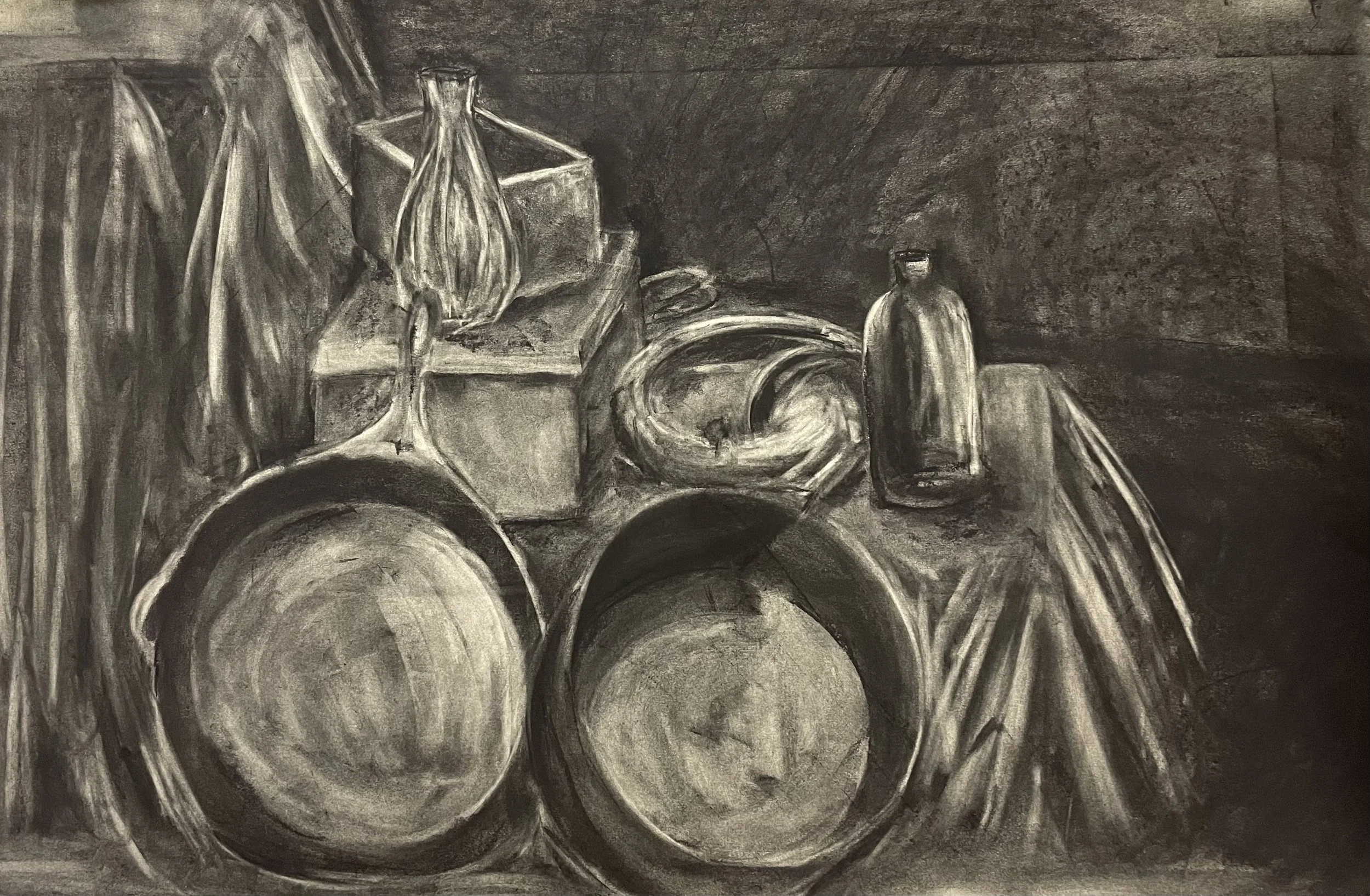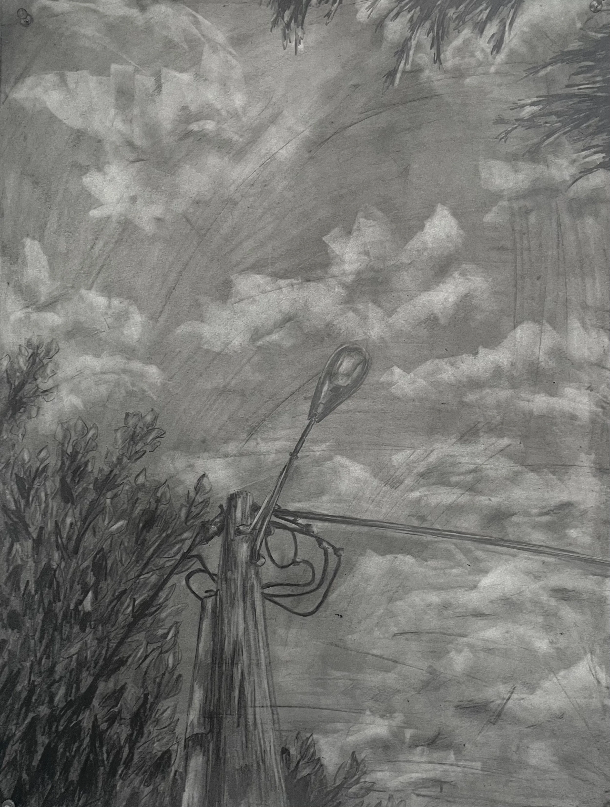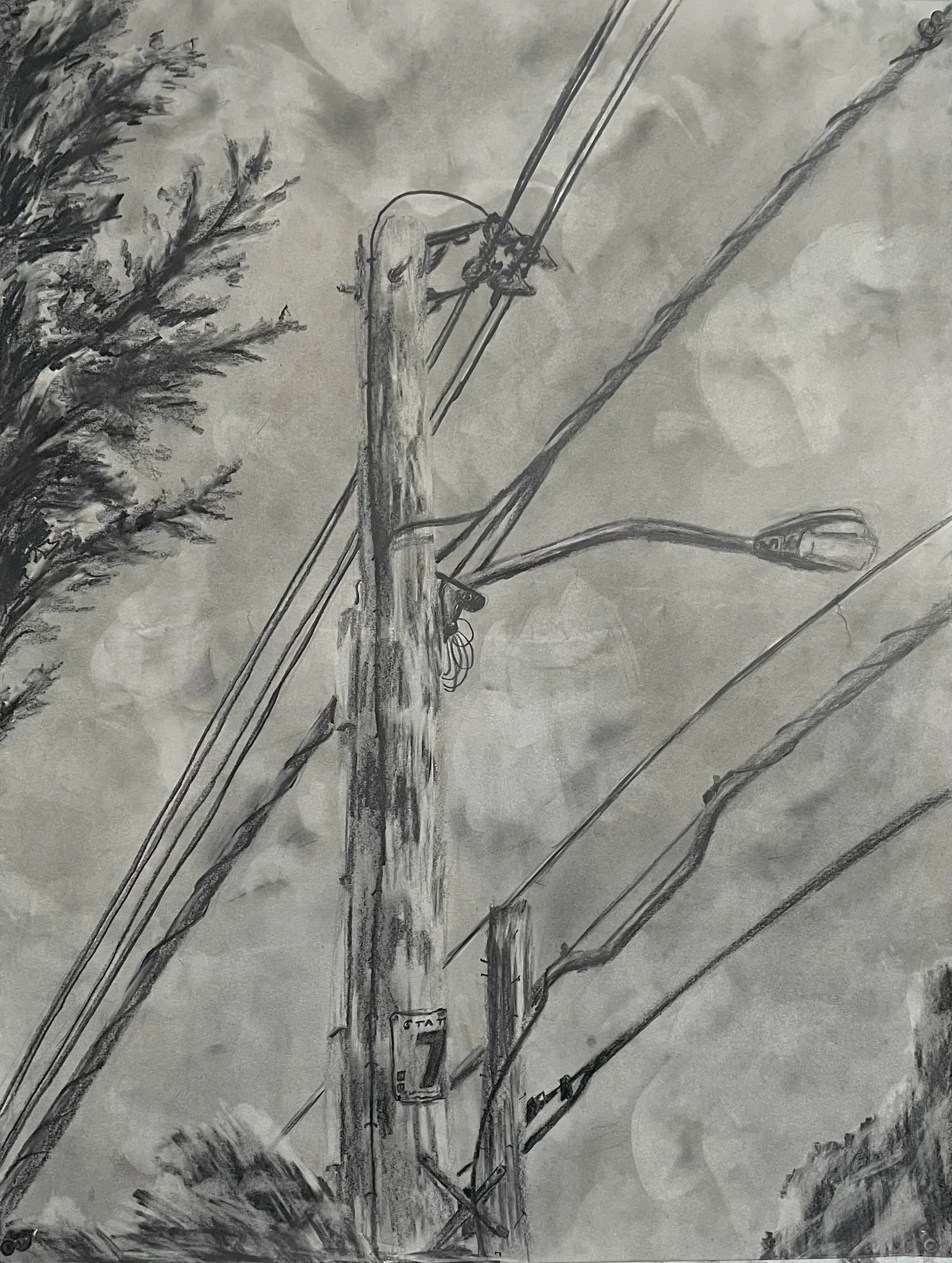 Drawing has been one of the most challenging media for me to learn, as it requires a strong technical foundation and highly intentional mark-making. It pushes me to slow down, observe more closely, and translate what I see with precision. My drawings often explore value and texture, capturing landscapes and still lifes through a variety of subjects, including hands, trees, and telephone poles. Some pieces are focused technical studies, while others lean into more conceptual territory, using drawing as a way to explore mood or memory. Taken together, these works reflect my evolving relationship with observation and interpretation, and ultimately, they serve to capture and communicate my unique perspective on the world around me.