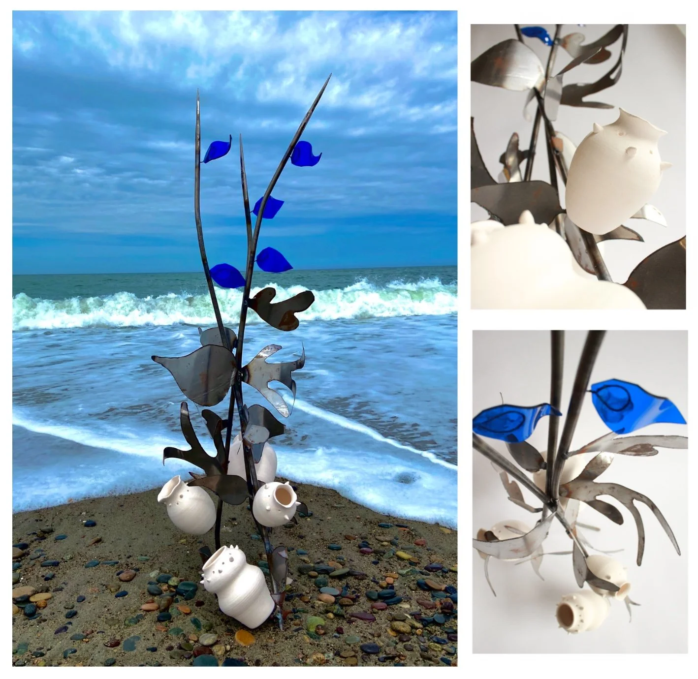 I have pursued my affinity for 3D art in a variety of media outside of ceramics, including metal, wood, fabric, and acrylic. Merging different media in one sculptural form allows me to relate different materials to create a cohesive identity, often prompting me to clash man-made with nature. Some of my work echoes my ceramic work, drawing inspiration from nature and the ocean and attempting to capture natural movements. For me, the process of sculpting, including texture, weight, and form, is just as important as the resulting piece. Additionally, I am able to use my engineering background to work with a wide range of materials skillfully to execute my concepts with greater depth and detail.